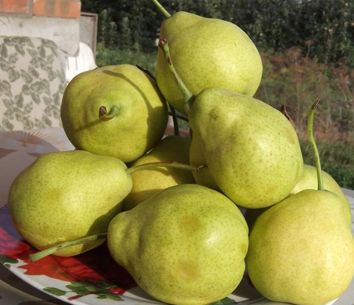 Плоды: Груши «Августовская роса» имеют средний и крупный размер, весом от 120 до 150 граммов. Их форма грушевидная, с гладкой, тонкой кожицей, которая в зрелом состоянии приобретает желтовато-зеленый оттенок с легким румянцем. Мякоть плодов белоснежная, сочная и сладкая, с тонким ароматом, что делает их идеальными для употребления в свежем виде.